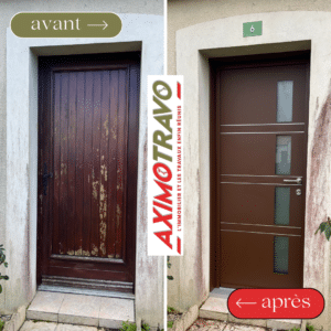 Le remplacement d’une ancienne porte en bois par un modèle aluminium K-LINE a permis de moderniser cette habitation à La Roche-sur-Yon. Le réseau Aximotravo a géré cette intervention réalisée en une matinée, garantissant une pose précise et une isolation renforcée. Cet investissement améliore à la fois l’esthétique et la performance thermique du logement.